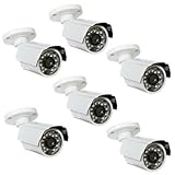 Pack of (6) GW Weatherproof IR Bullet Day/Night Security Indoor Outdoor Camera w/ Power Supply Kit - 600TVL, 1/3" SONY CCD, with Super Low 0.0 Lux, 24 Pcs InfraRed LED, Up To 65.6 Feet Distance